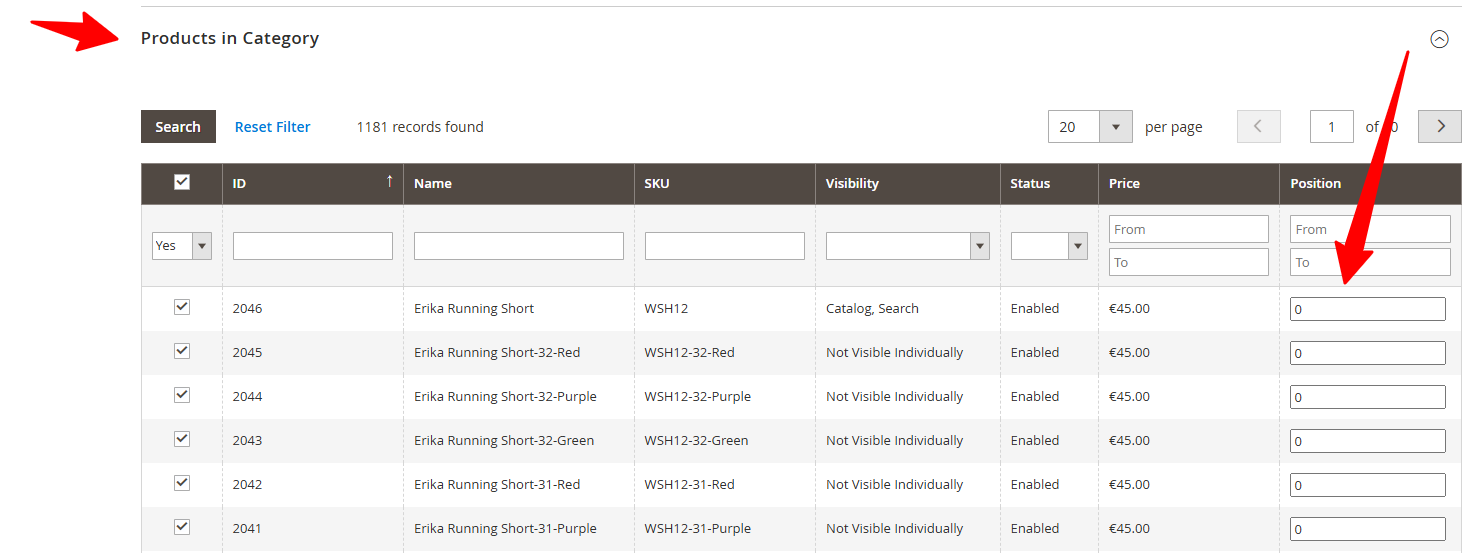 • Troverai una tabella con tutti i tuoi prodotti. Presta attenzione alla colonna Position.