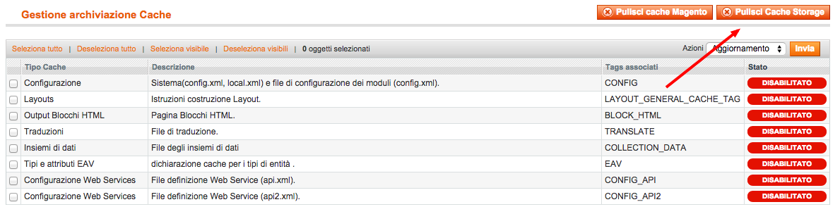 • Perciò vai su Sistema -> Gestione della Cache -> svuotamento Cache   magento wordpress