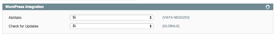 • Scorrendo più in basso troverai l’opzione chiamata Wordpress Integration questa deve essere impostata così:integrazione wordpress abilitata