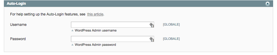 Dobbiamo solo impostare l’Auto Login. Questo non è fondamentale ma è molto utile in quanto ti permette di accedere a WordPress automaticamente quando entri in Magento, senza avere due pagine di admin separate.