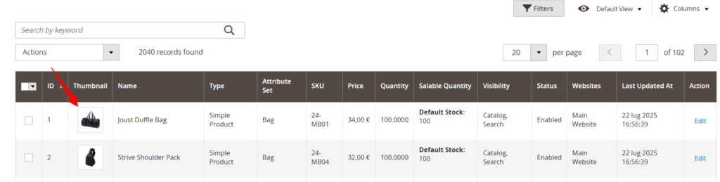 - Accedi al pannello Admin Magento 2.