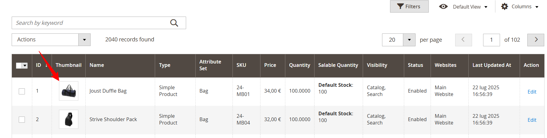 - Vai su Catalog -> Product