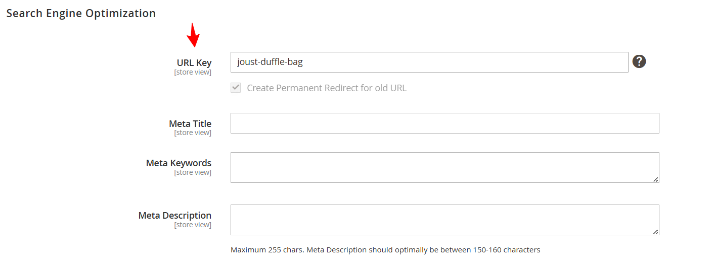 - Inserisci un URL key composto da parole minuscole e trattini (