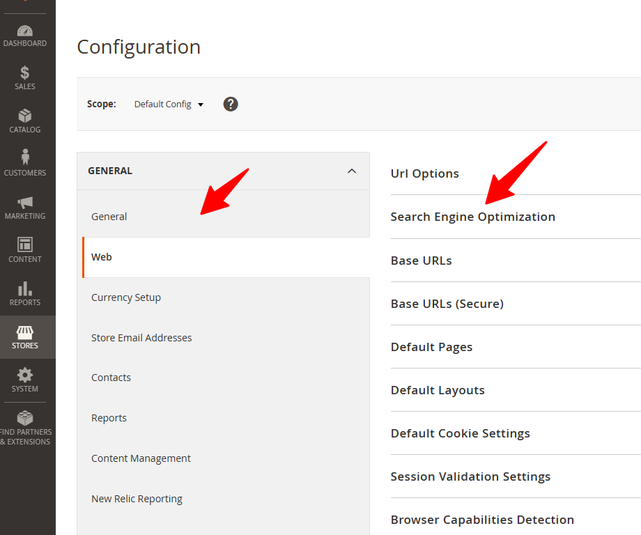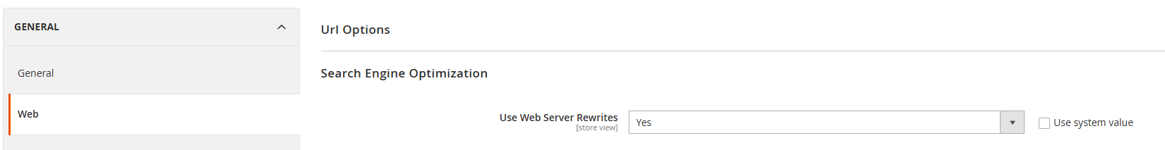 - Apri la sezione Search Engine Optimization e metti “yes” alla voce Use Web Server Rewrites