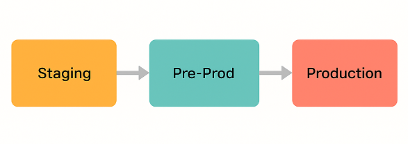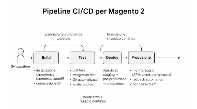 Un flusso di staging → pre-prod → produzione permette di testare nuove feature, moduli o aggiornamenti senza rischi.