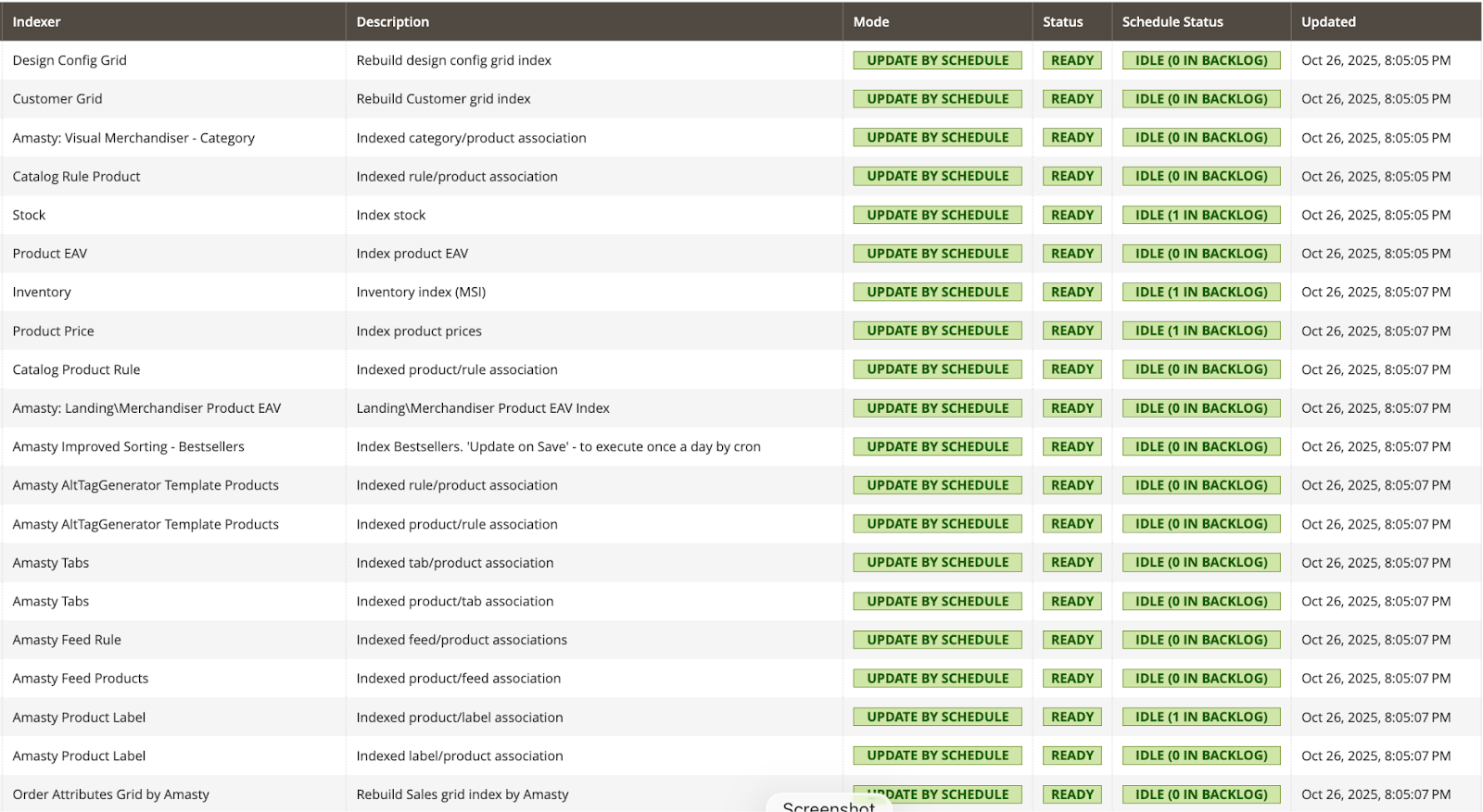 Gli indexer di Magento aggiornano tabelle e viste che alimentano il catalogo, le promozioni e la ricerca.