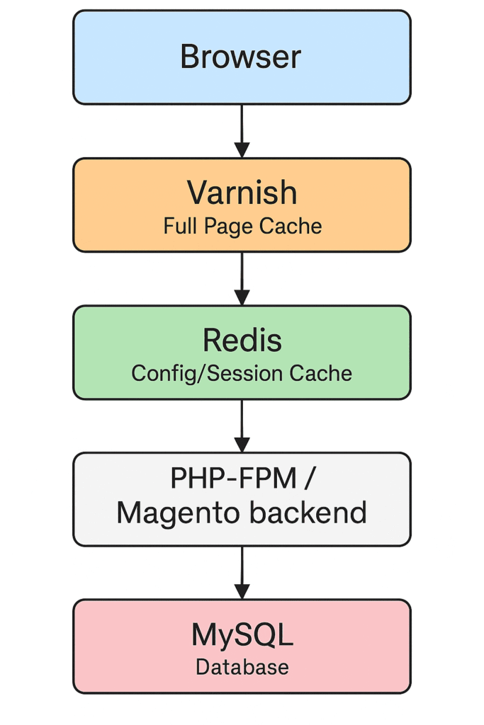 Magento 2 supporta diversi sistemi di cache: Varnish, Redis, Full Page Cache (FPC) e cache di blocco.