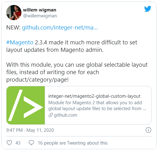 Dalla versione 2.3.4, Magento ha rimosso i campi di aggiornamento del layout dall’amministratore Magento per motivi di sicurezza. Il seguente modulo consente di applicare gli aggiornamenti di layout globali in modo pratico: