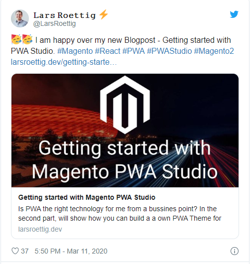 Per ulteriori info, [Lars Roettig] Getting started with Magento PWA Studio