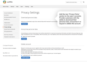 È necessario dare la possibilità sul proprio sito Web ai clienti di cancellare o rendere anonimi i loro record personali dal database Magento, accedendo alla sezione del “mio account” presente sul sito Web.