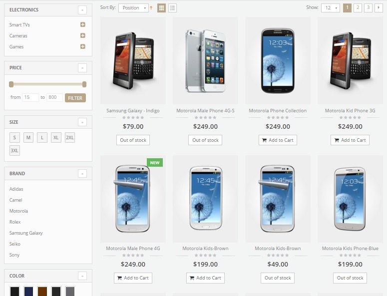 E’ importante dire che il tema supporta completamente AJAX. Questa tecnologia è implementata quasi ovunque, in modo che i tuoi clienti possano ottenere tutte le informazioni necessarie in maniera rapida e senza ricariche di pagina. E’ possibile integrare le seguenti estensioni di Magento: Ajax Navigation e Ajax Cart.